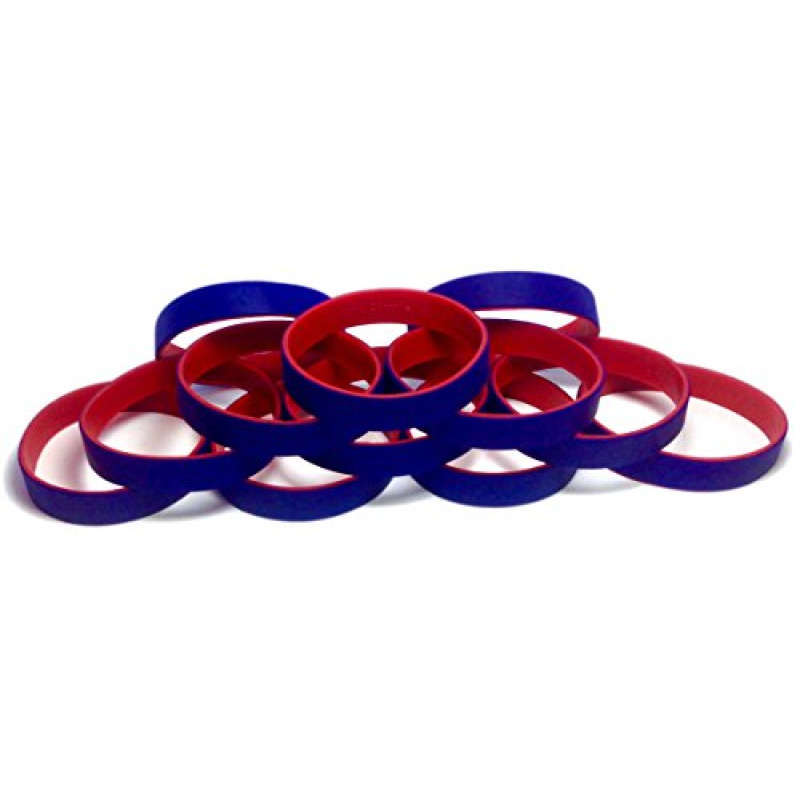 1 Dozen Multi-Pack Blue ColorSpray on Red Wristbands Bracelets Silicone Rubber - Select from a Variety of Colors (Blue on Red, Adult (8" 202mm))