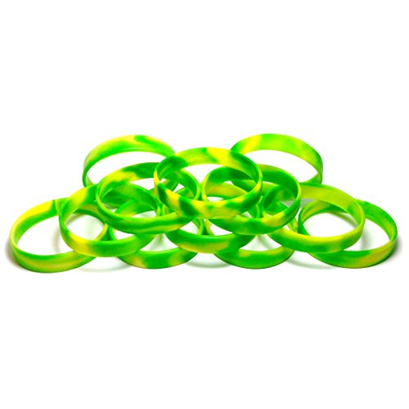 1 Dozen Multi-Pack Green & Yellow Swirl Wristbands Bracelets Silicone Rubber - Select from a Variety of Colors (Green & Yellow Swirl, Adult (8" 202mm)