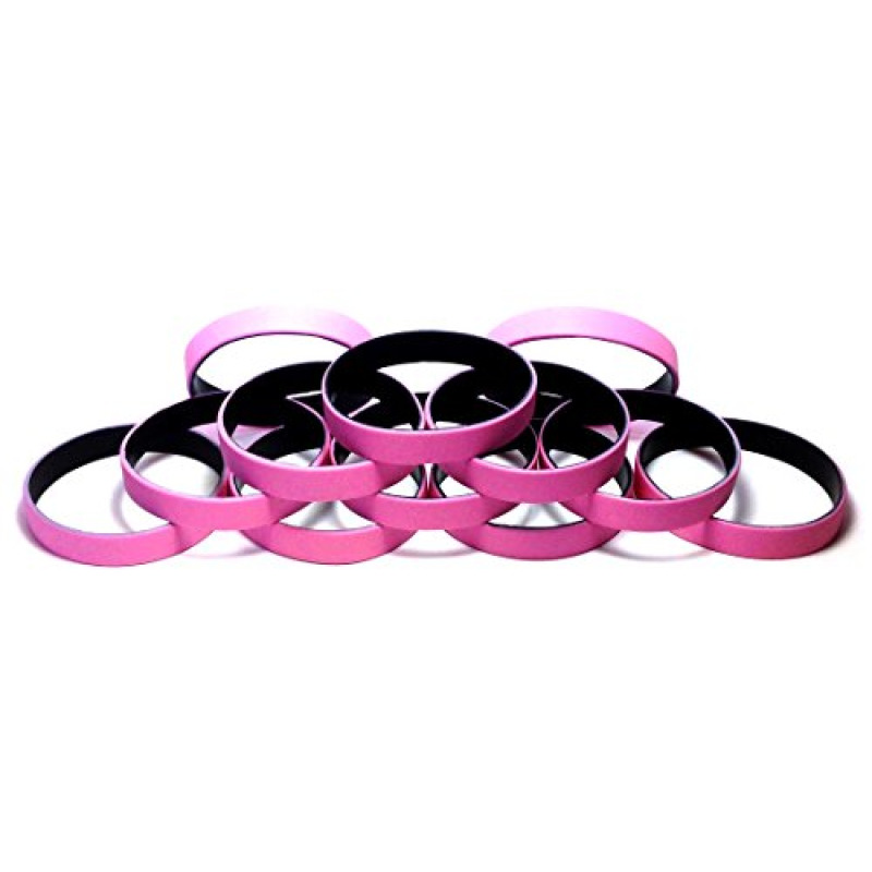 1 Dozen Multi-Pack Pink ColorSpray on Black Wristbands Bracelets Silicone Rubber - Select from a Variety of Colors (Pink on Black, Adult (8" 202mm))