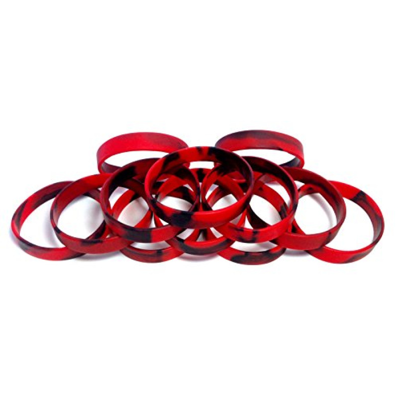 1 Dozen Multi-Pack Red & Black Swirl Wristbands Bracelets Silicone Rubber - Select from a Variety of Colors (Red & Black Swirl, Adult (8" 202mm))