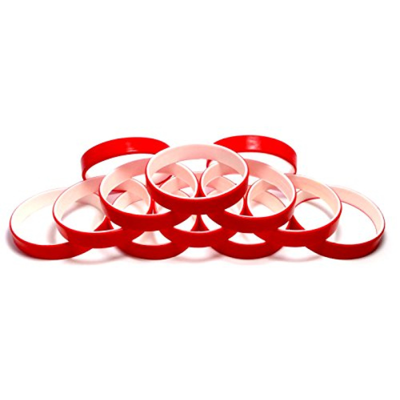 1 Dozen Multi-Pack Red ColorSpray on White Wristbands Bracelets Silicone Rubber - Select from a Variety of Colors (Red on White, Adult (8" 202mm))