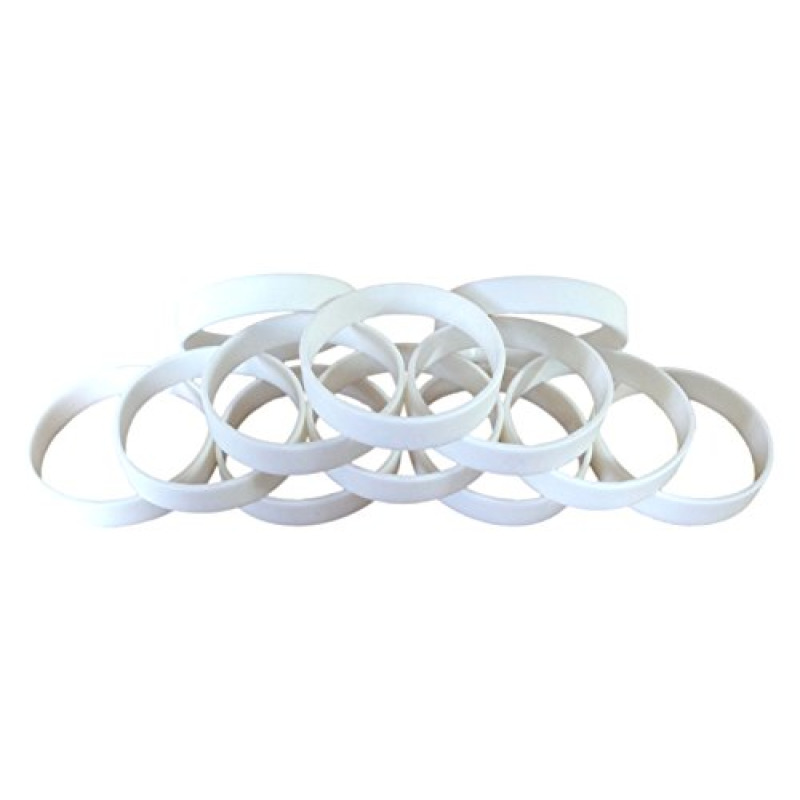1 Dozen Multi-Pack WHITE Wristbands Bracelets Silicone Rubber - Select from a Variety of Colors (White, Adult (8" 202mm))