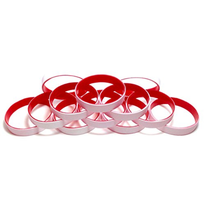 1 Dozen Multi-Pack White ColorSpray on Red Wristbands Bracelets Silicone Rubber - Select from a Variety of Colors (White on Red, Adult (8" 202mm))