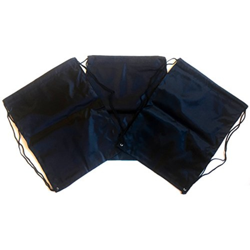 3 Pack BLACK Nylon Drawstring Backpacks Sackpack Tote Cinch Gym Bag - Select from a Variety of Colors! (X-Large, Black)