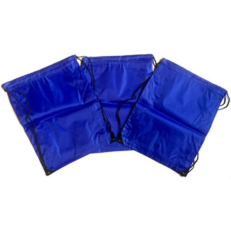 3 Pack BLUE Nylon Drawstring Backpacks Sackpack Tote Cinch Gym Bag - Select from a Variety of Colors! (Regular, Blue)