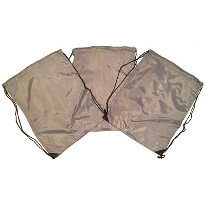 3 Pack COOL GRAY Nylon Drawstring Backpacks Sackpack Tote Cinch Gym Bag - Select from a Variety of Colors! (Regular, Cool Gray)
