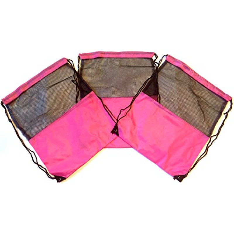 3 Pack PINK MESH Nylon Drawstring Backpacks Sackpack Tote Cinch Gym Bag - Variety of Colors! (Regular, Pink Mesh)
