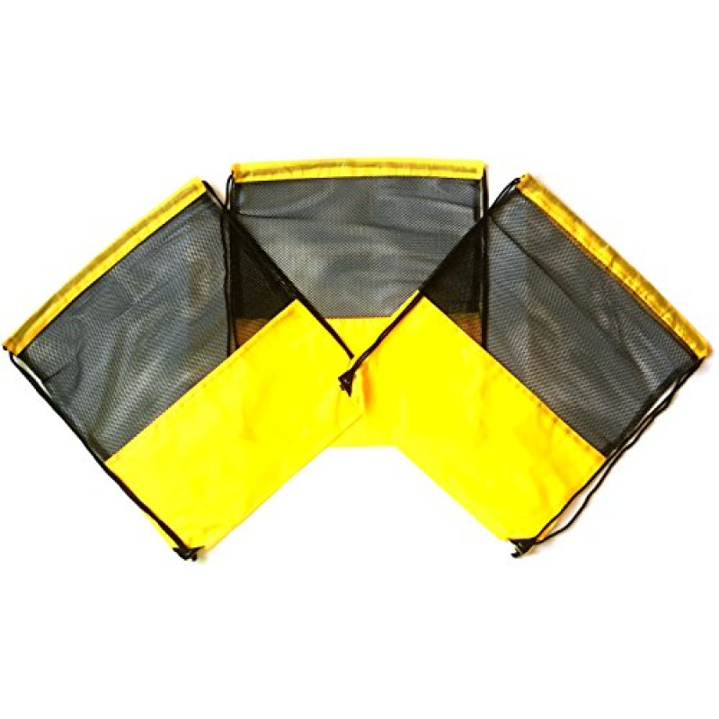3 Pack YELLOW MESH Nylon Drawstring Backpacks Sackpack Tote Cinch Gym Bag - Select from a Variety of Colors! (X-Large, Yellow Mesh)